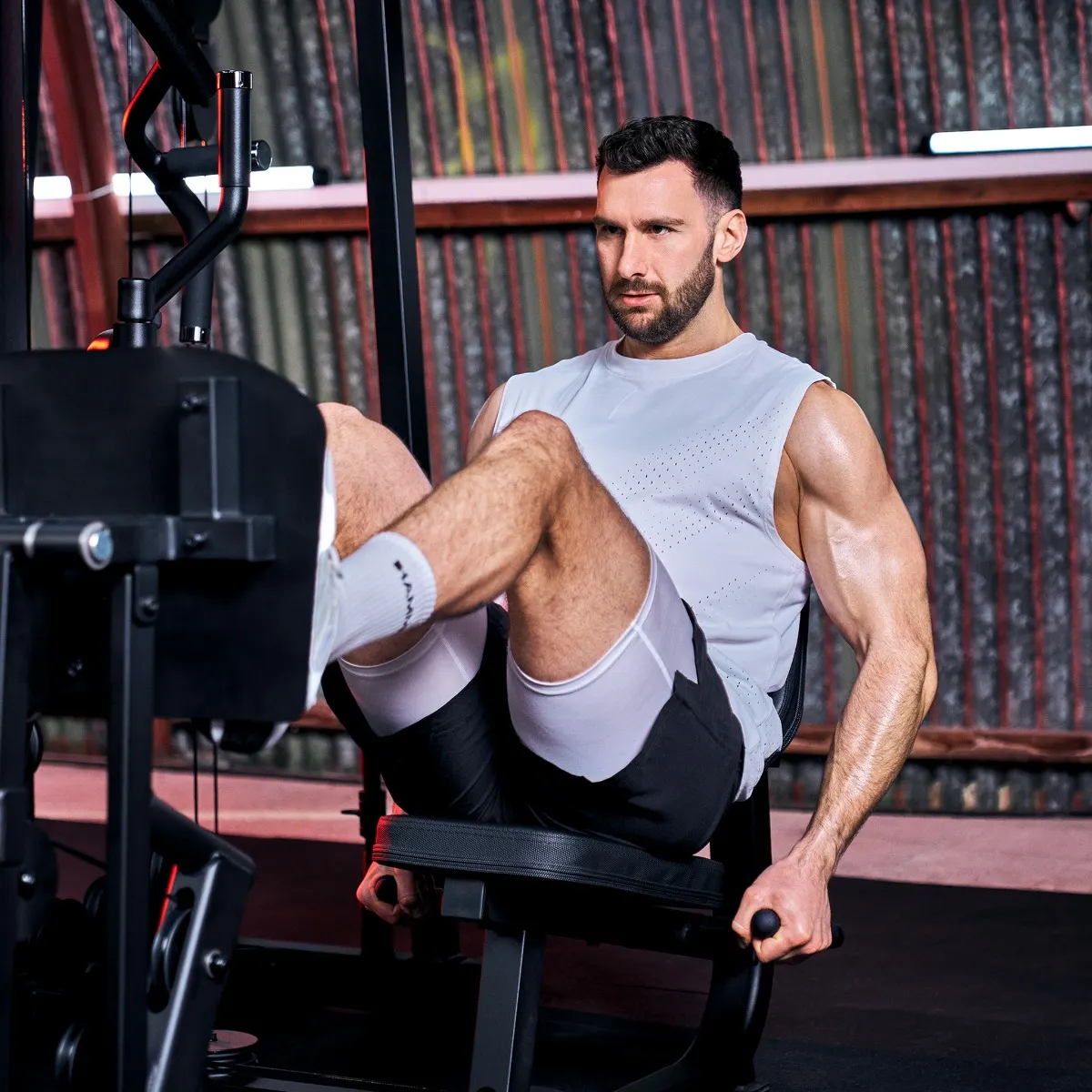 The multifunctional studio training tower and “power turbo” for professional fitness and strength training at home. Including leg extension/leg curl function, separate butterfly unit and high-quality leg press. The roller system, which can be rotated 160 degrees and is height-adjustable, guarantees efficient muscle training.