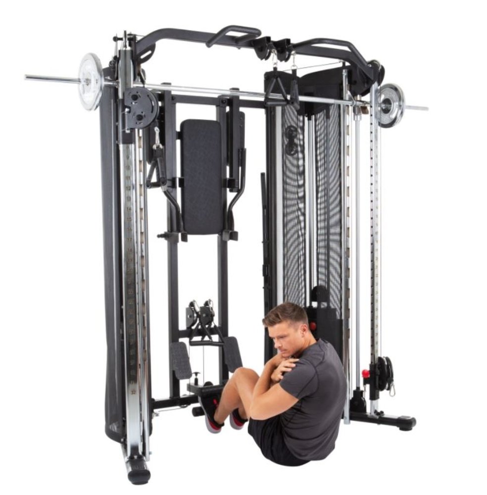 The accessories included in the delivery of your Autark 10.0 give you as many training options as you would have in any fitness studio. The following accessories give you all the exercise options you need for your weight training on this functional trainer: Barbell, lat bar, curl bar (with special holders on the multi-gym) and a footrest for optimal safety during abdominal exercises. The integrated, collapsible dip-lmodules and the armrests are super functional and offer extra abdominal training options.